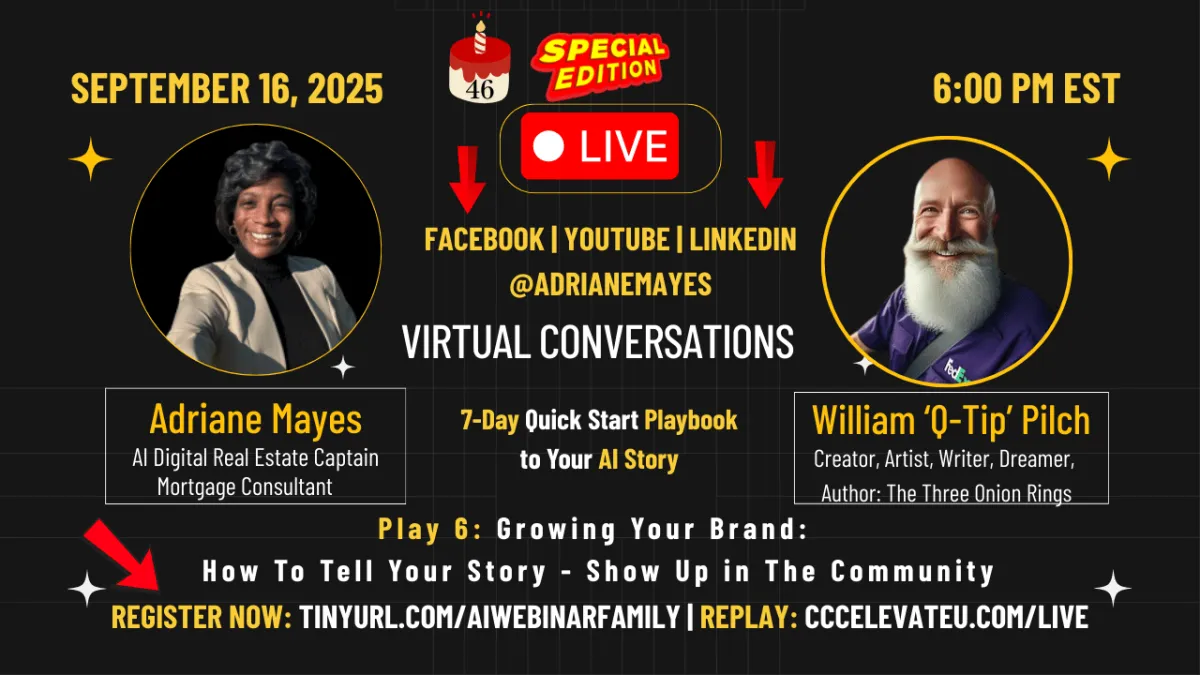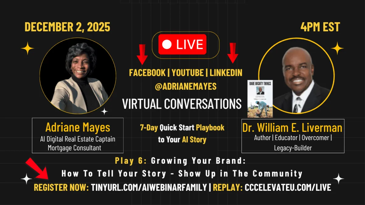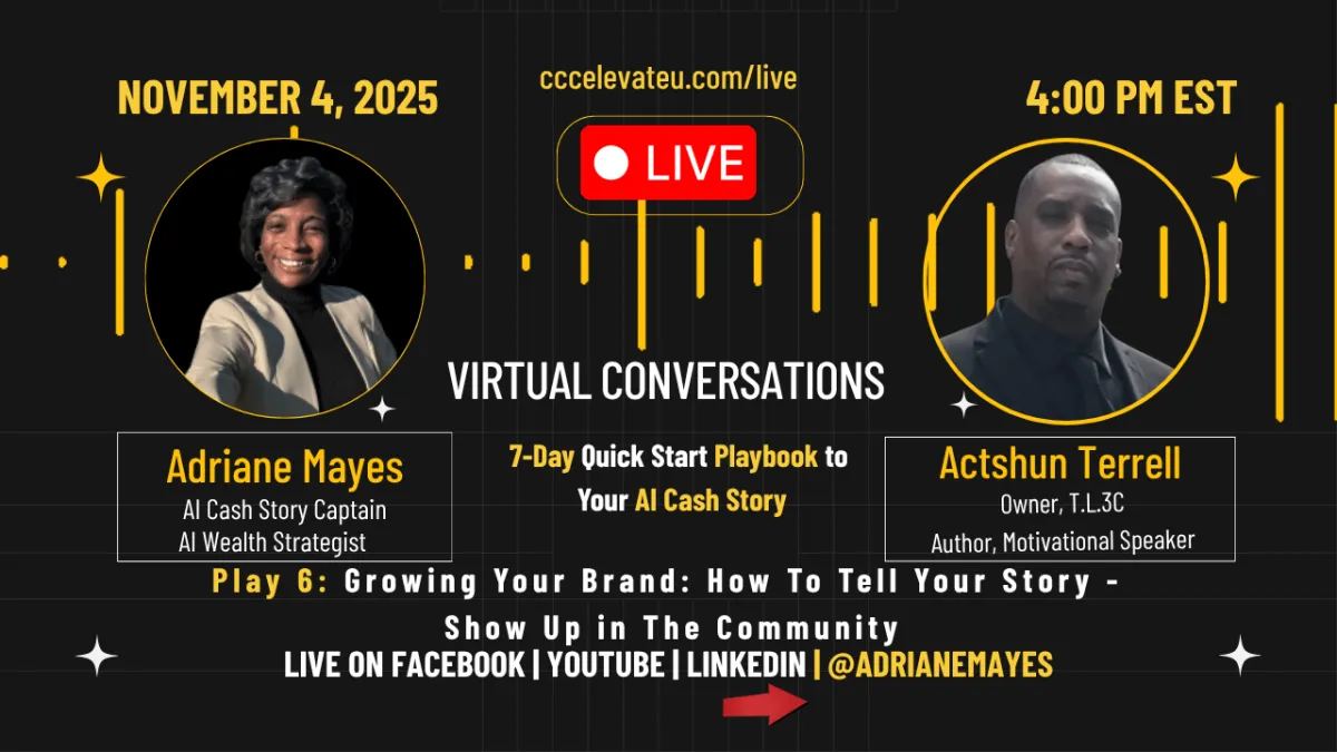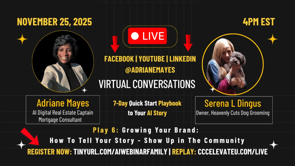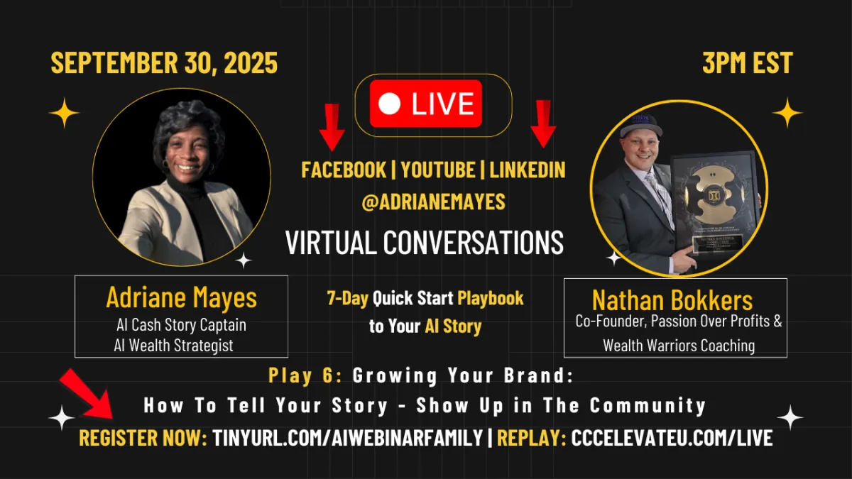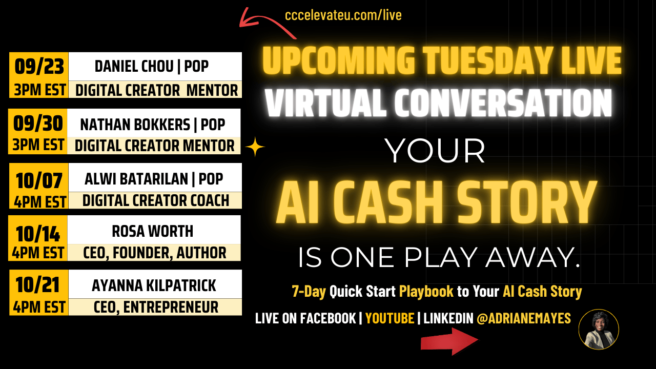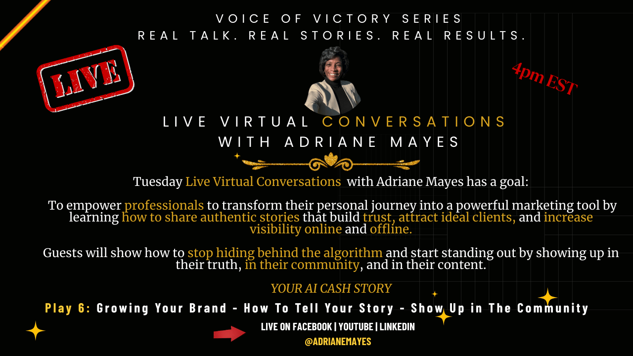 Creator of Tuesday LIVE Virtual Conversations, the Billionaire Brand AI Webinar Blueprint and hands-on training course that turns stories into sales.