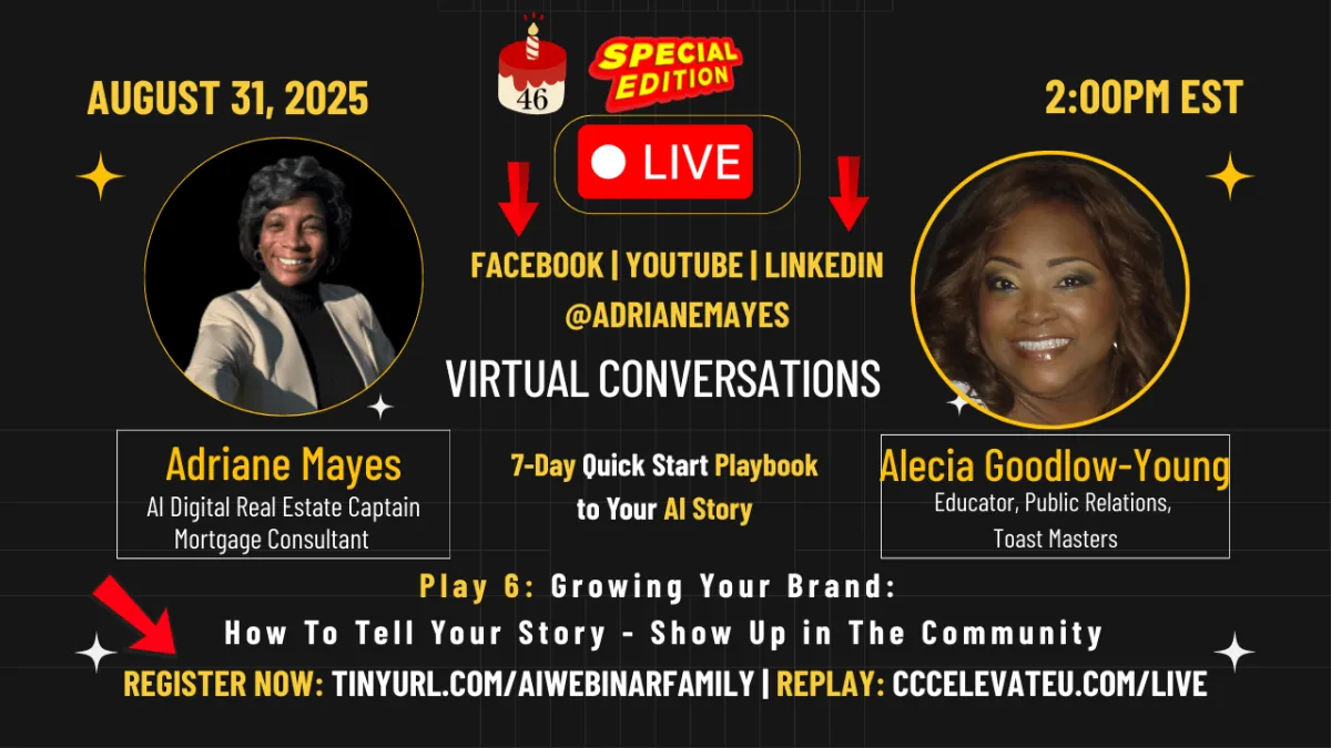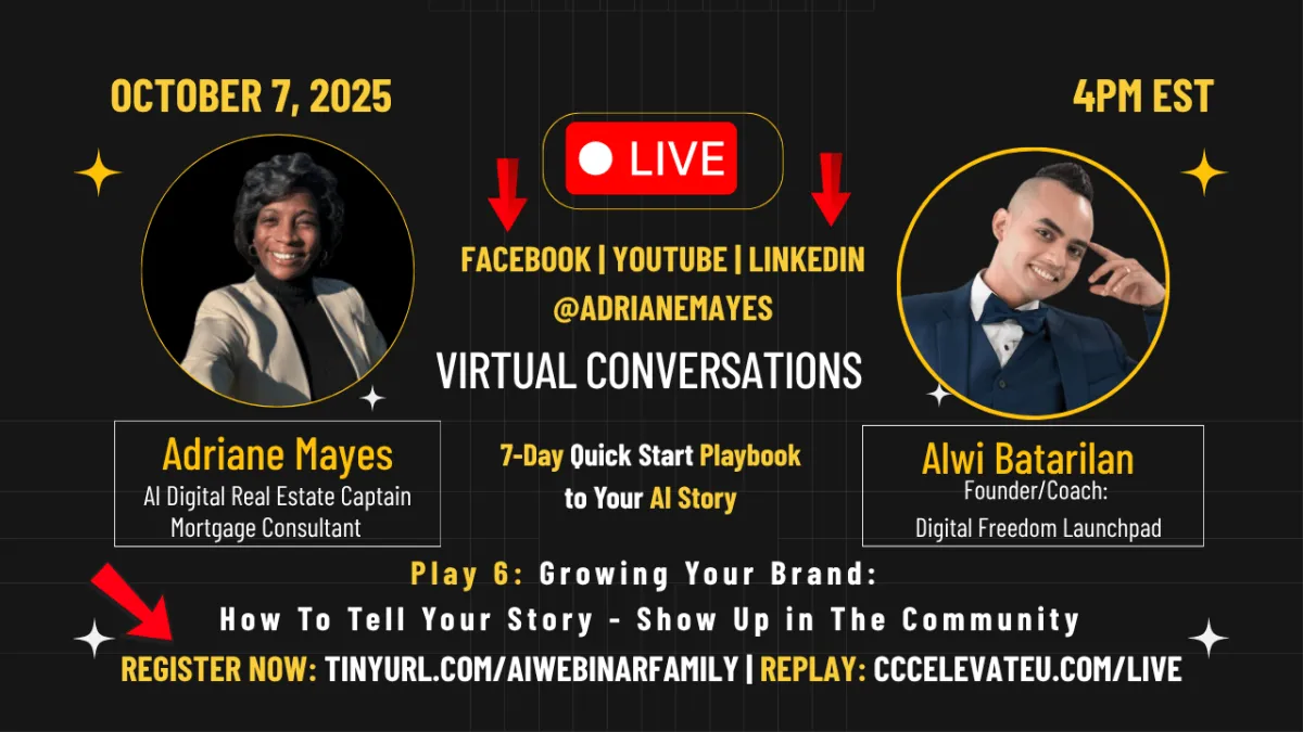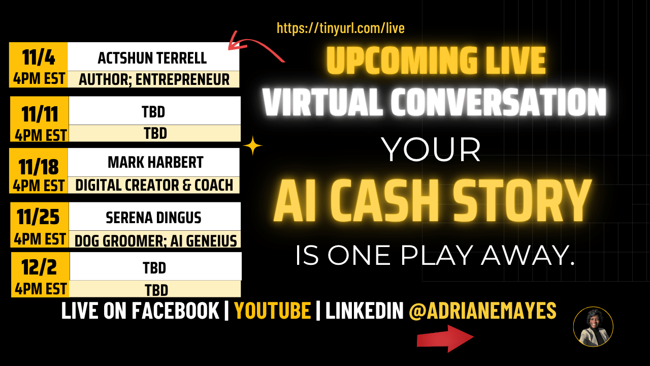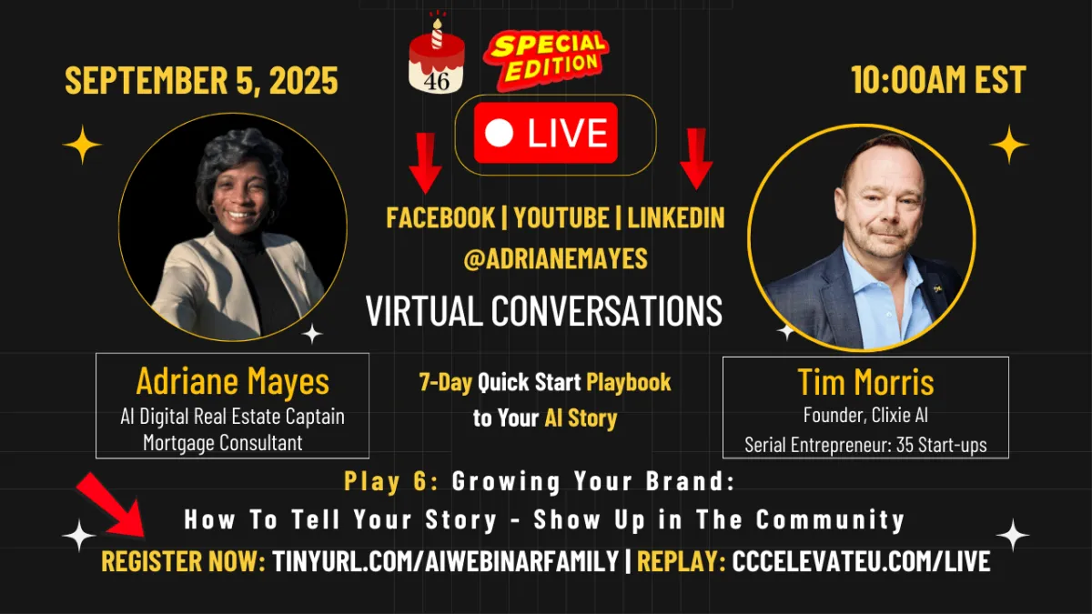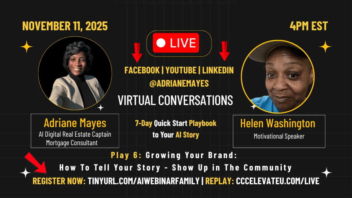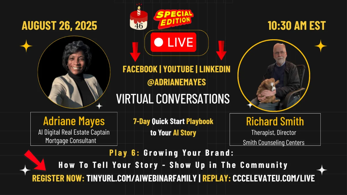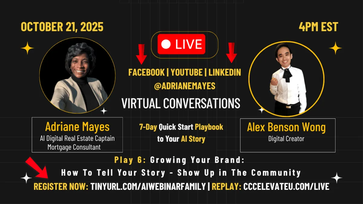 Creator of Tuesday LIVE Virtual Conversations, the Billionaire Brand AI Webinar Blueprint and hands-on training course that turns stories into sales.