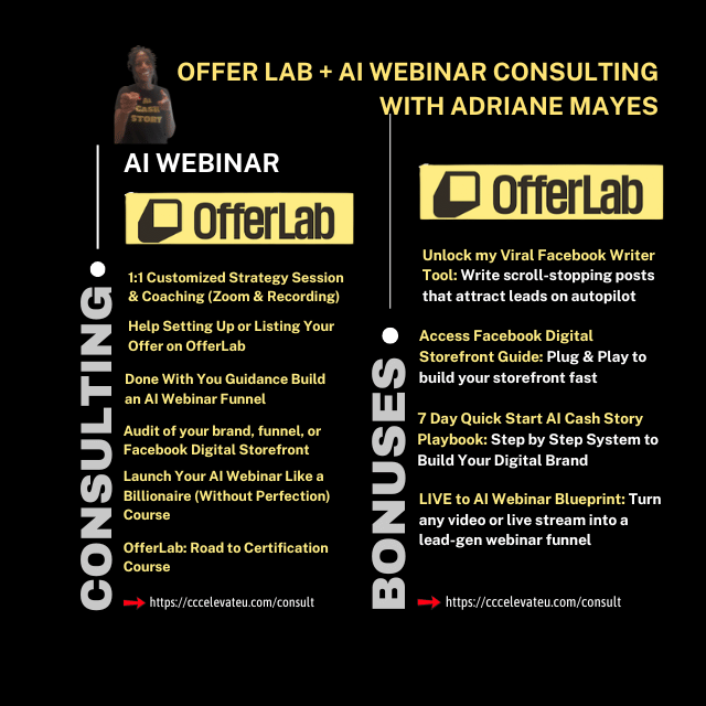 When you do a LIVE Consult with Adriane Mayes, you’re unlocking clarity, strategy, and momentum. She’ll help you: