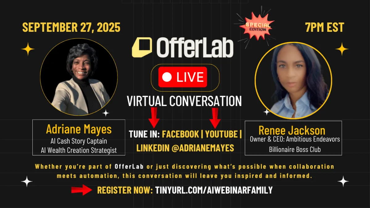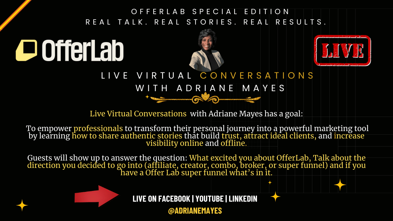 Each LIVE Virtual Conversation – OfferLab Edition is a powerful, authentic dialogue designed to spotlight the real people building real brands inside the OfferLab platform.