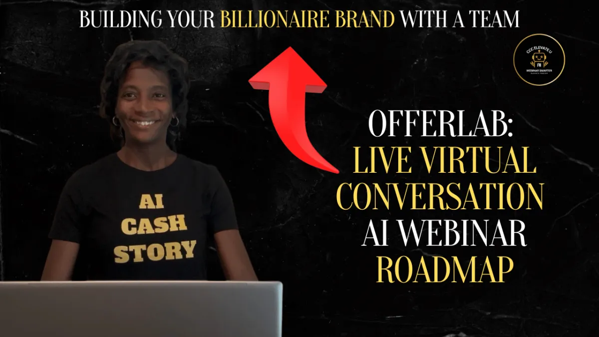 Discover the Offer Lab: LIVE Virtual Conversation AI Webinar Blueprint - an experience where Adriane Mayes, your AI Cash Story Captain, shows you how to launch, automate, and scale your webinar with OfferLab and AI tools into a system that works while you sleep.